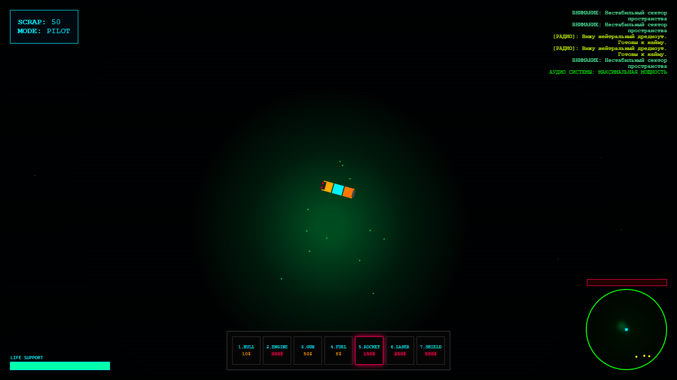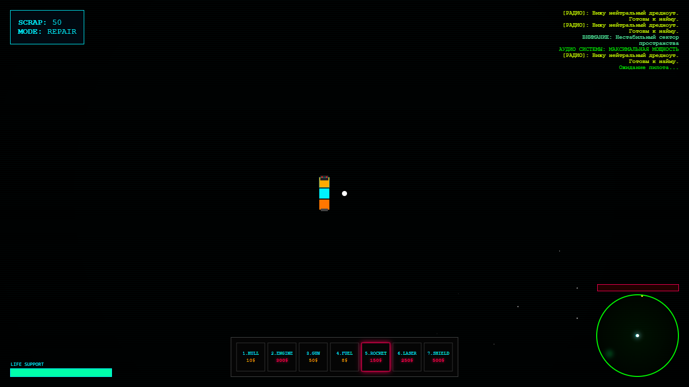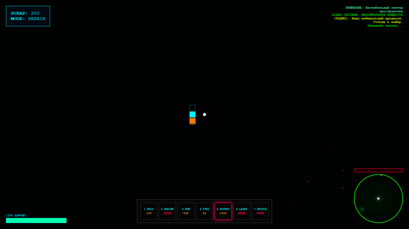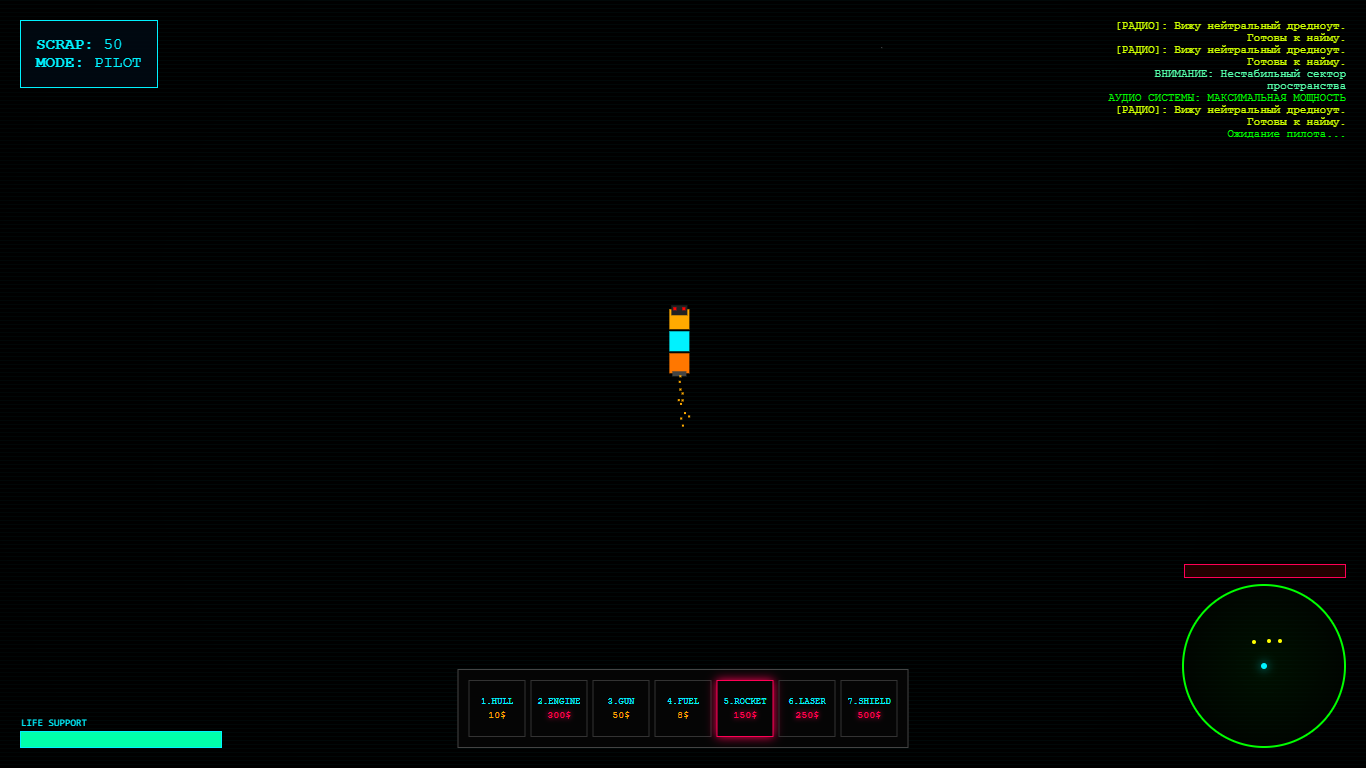 Игра создана на чистом JavaScript без участия движков. Это мой взгляд на то, как должен выглядеть минималистичный, но глубокий космический симулятор.